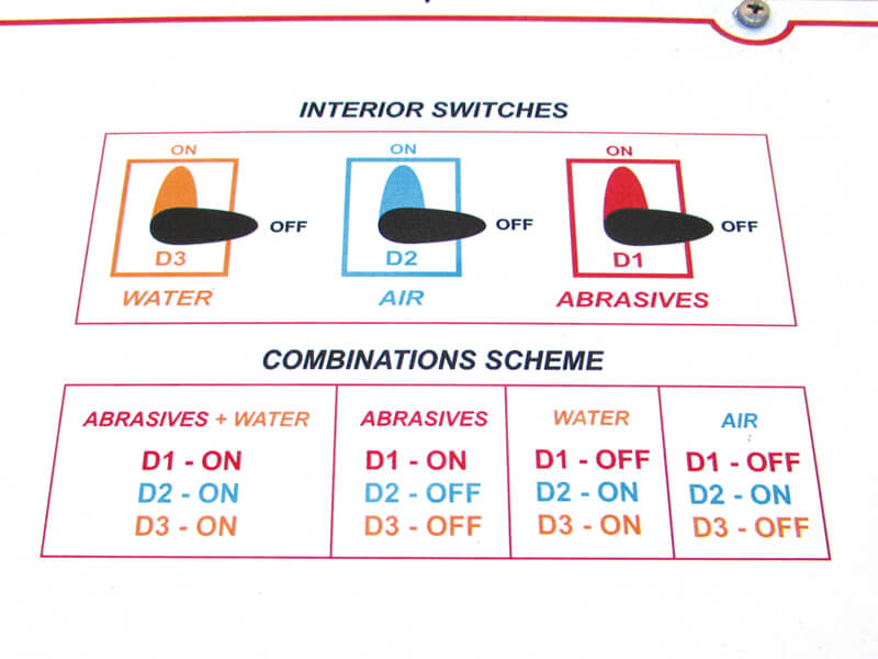 Tüm bu operasyonlar kabin içindeki vanaların konumlarının ayarlanması ile sağlanmaktadır. Tüm kabin paslanmaz çelikten mamuldür ve dahili aydınlatmalıdır. Su tankı hortum sayesinde sürekli doldurabilinir.