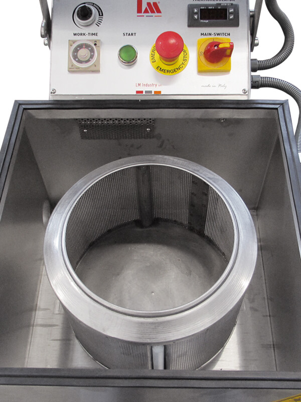 Kuyum, buji teri ve optik gözlük parçalarının kurutulması için santrifüj kurutma makinası. Komple paslanmaz çelikten mamul. Makine üzerine timer ve sıcaklık ayarlayıcı termostat mevcuttur. Opsiyonel olarak hız ayarlayıcı, kapağa fan eklenebilir.